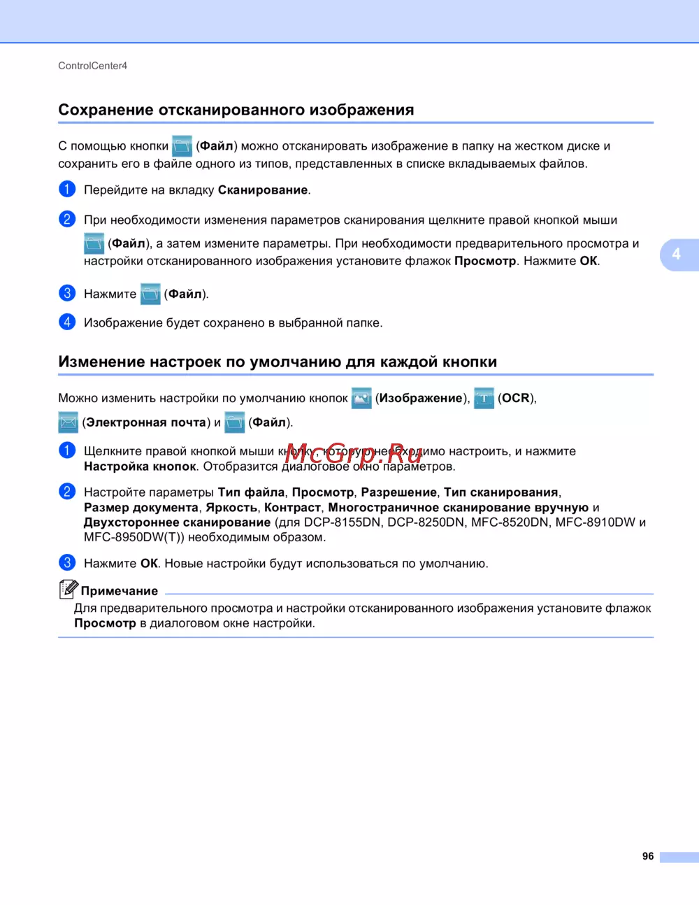 Brother DCP-8110D — как сохранить отсканированное изображение и изменить настройки [104/281]