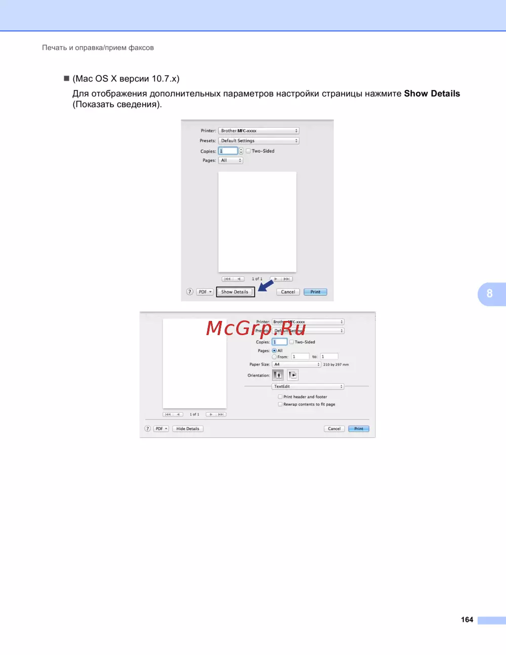 - Копирование pc fax mac os x 10 и 10 x pc fax только для моделей mfc p.213
