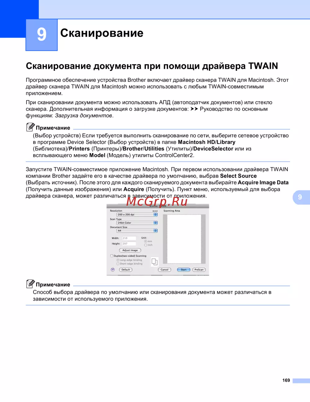 Brother DCP-8110D — сканирование документов с помощью драйвера TWAIN для Macintosh [177/281]