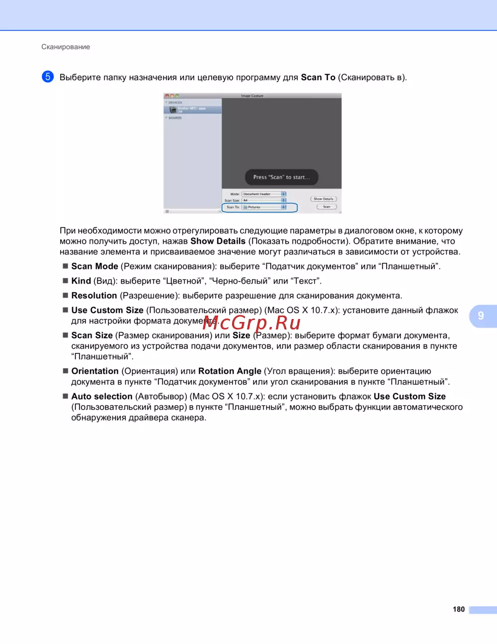 - Сканирование документа с помощью драйвера ica mac os x 10 x или выше p.185