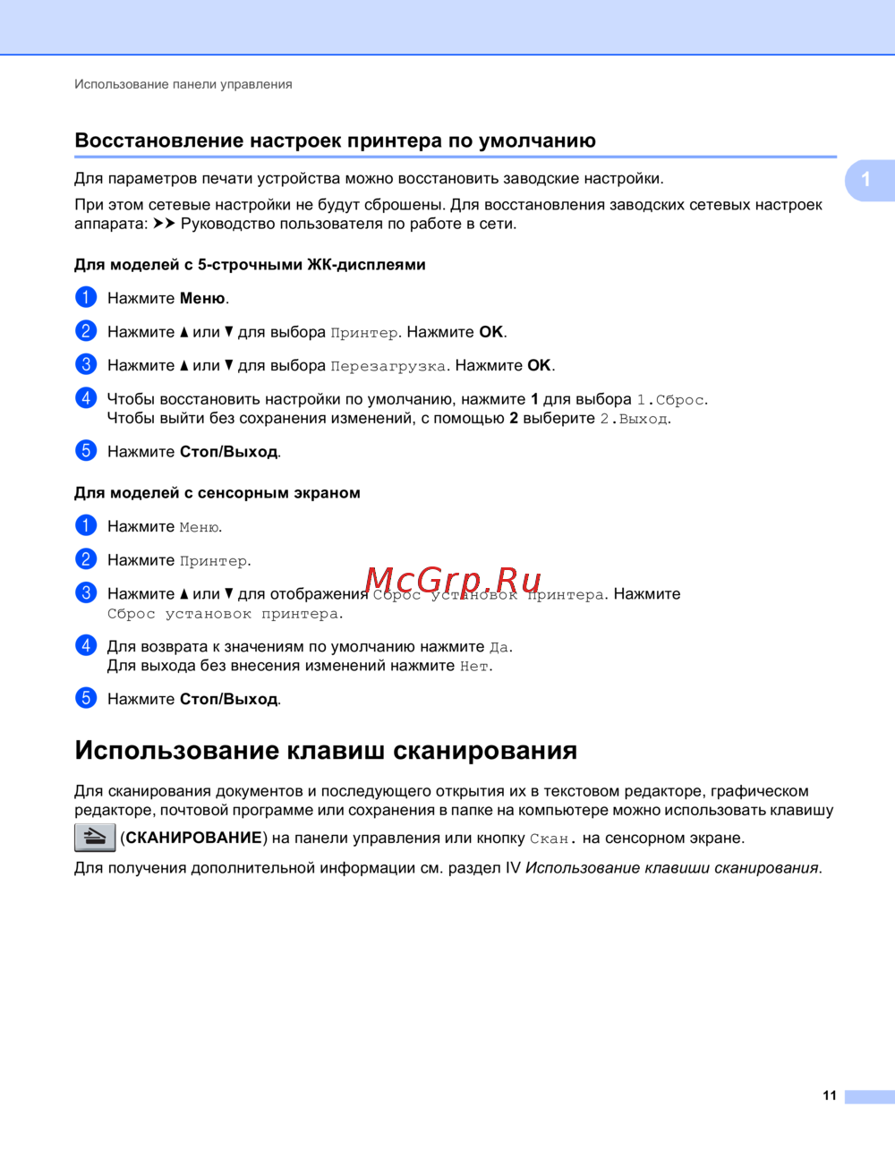 Brother DCP-8110D — как восстановить настройки принтера и использовать сканирование [19/281]