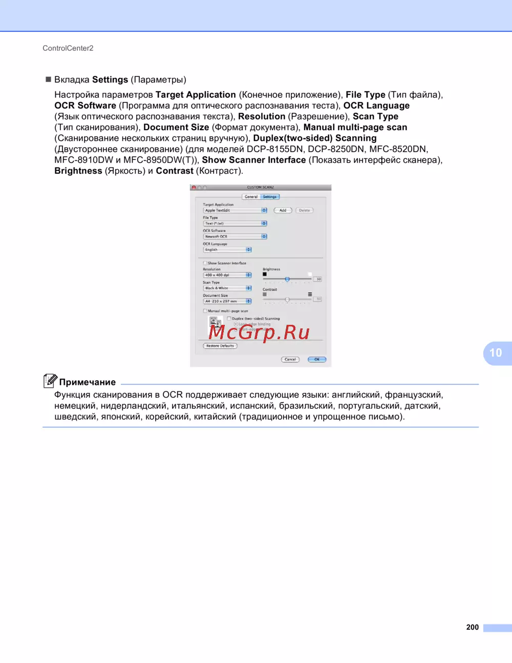 - Сканирование двустороннего документа для модели dcp 8155dn dcp 8250dn mfc 8520dn mfc 8910dw и mfc 8950dw t p.179