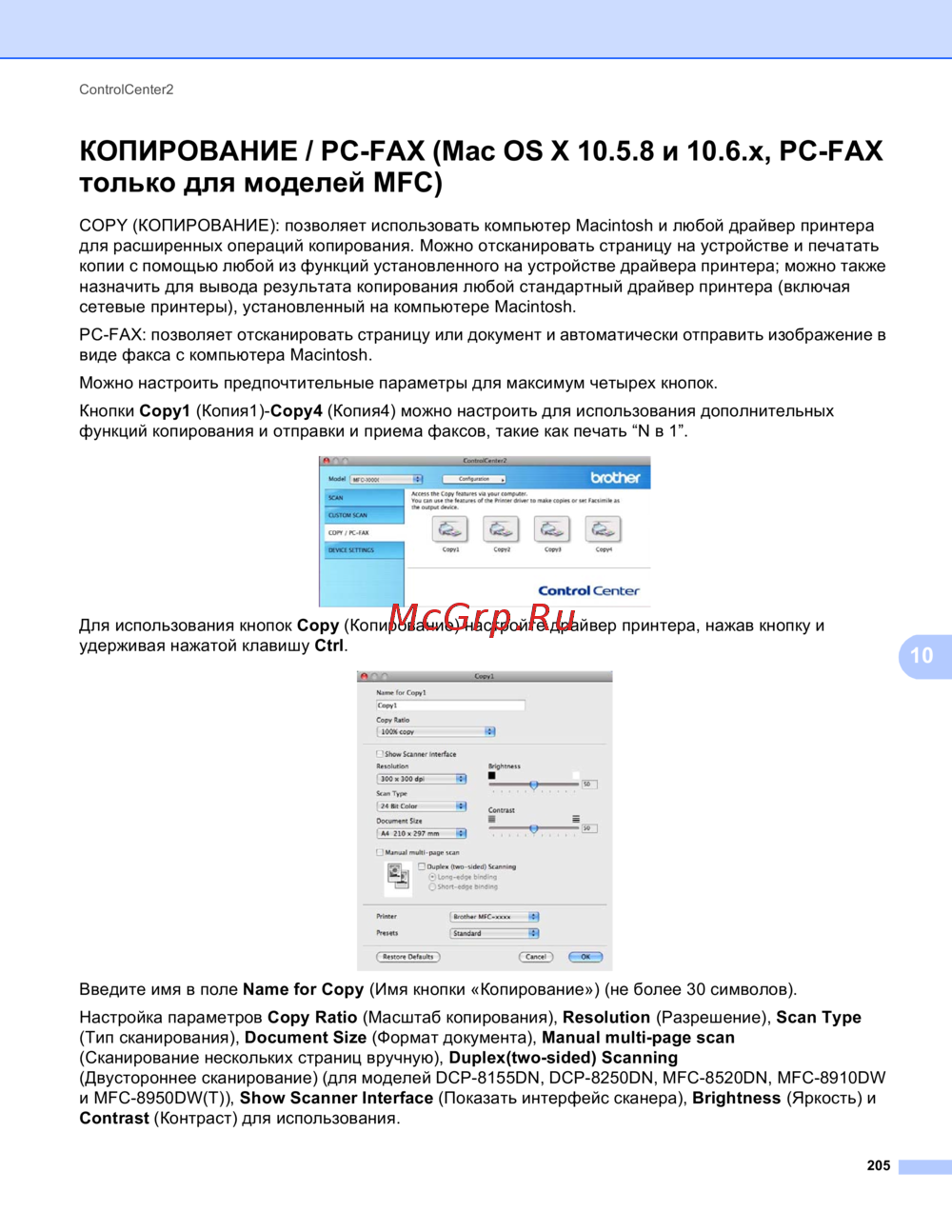 - Копирование pc fax mac os x 10 и 10 x pc fax только для моделей mfc p.213
