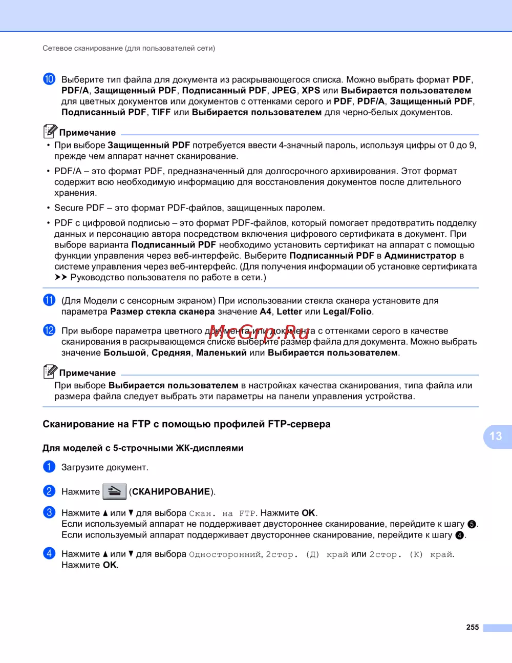 Сканирование на FTP с помощью профилей FTP-сервера 13