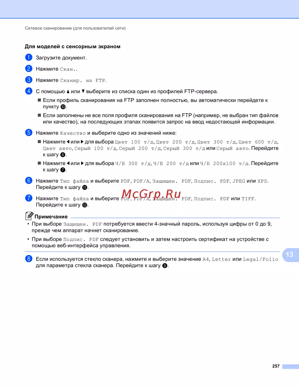 - Сканирование на ftp с помощью профилей ftp сервера p.263