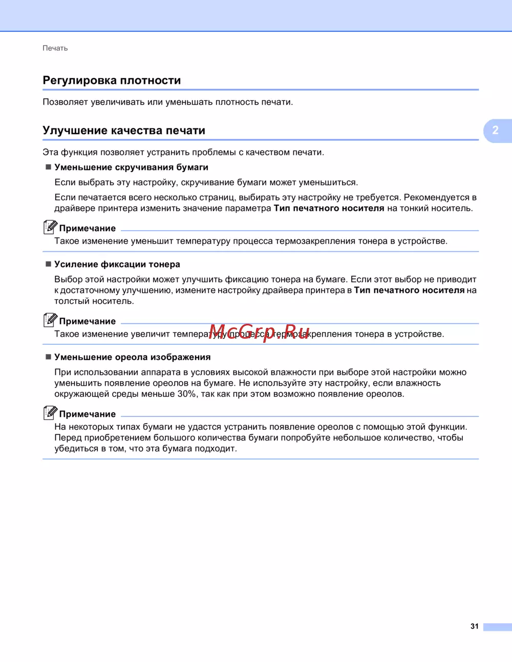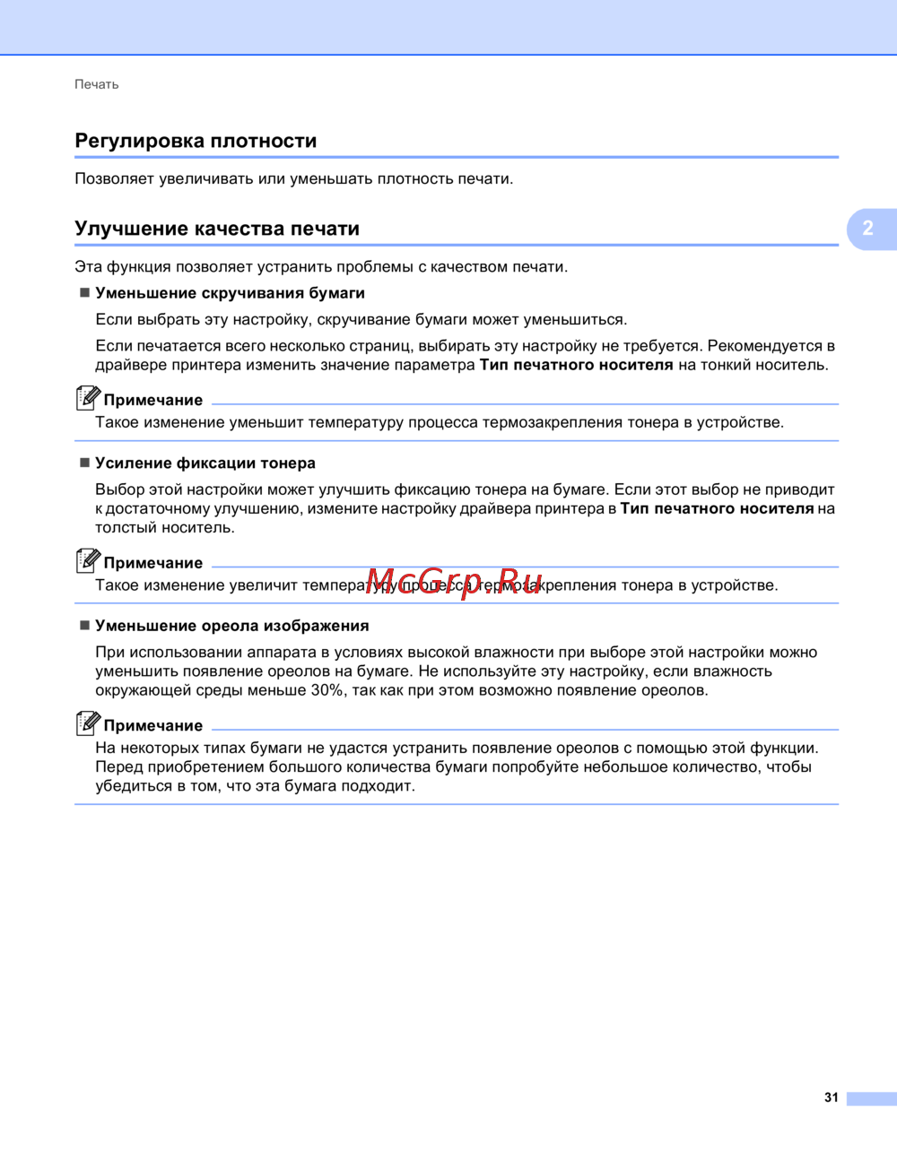 Выбор этой настройки может улучшить фиксацию тонера на бумаге. Если этот выбор не приводит
