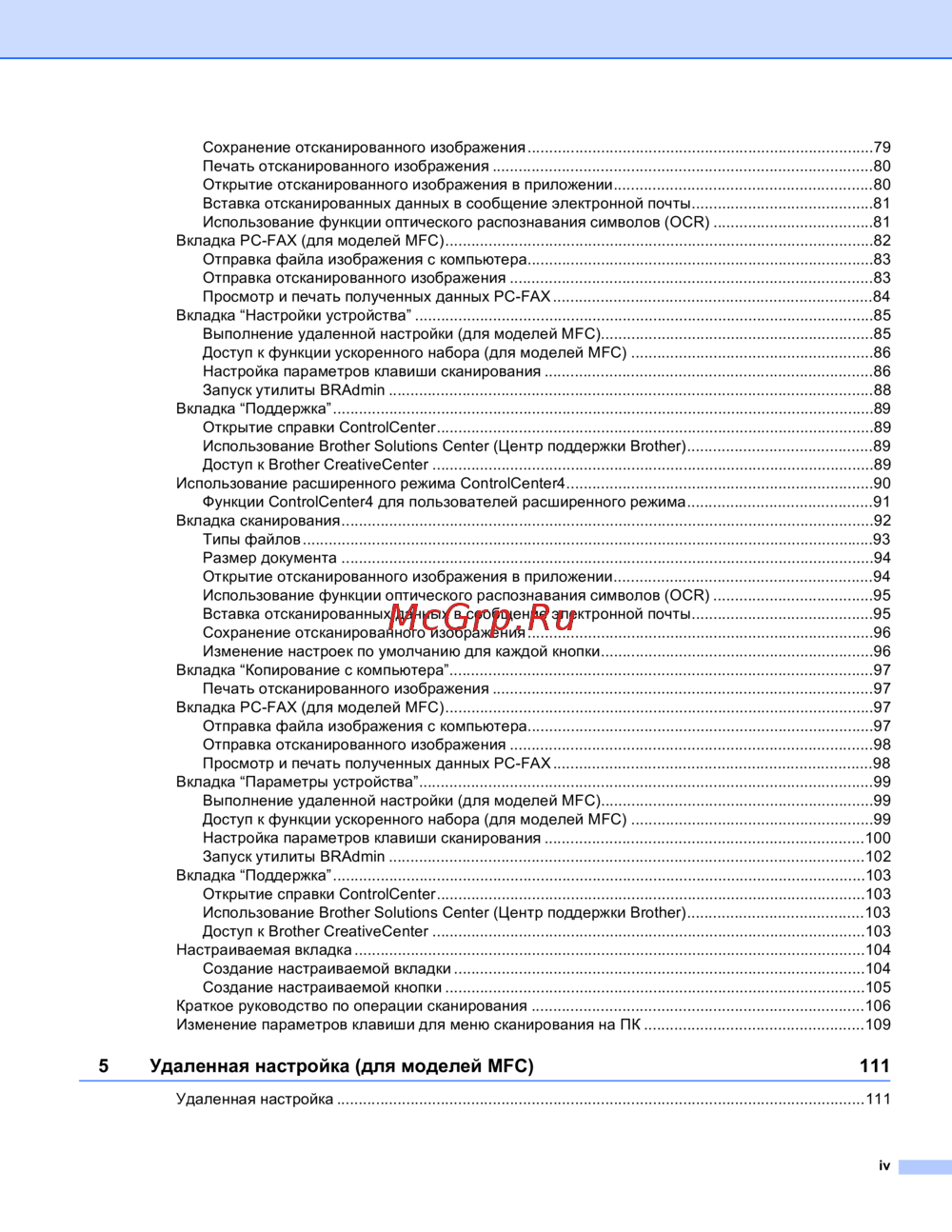 5 Удаленная настройка (для моделей MFC) 111