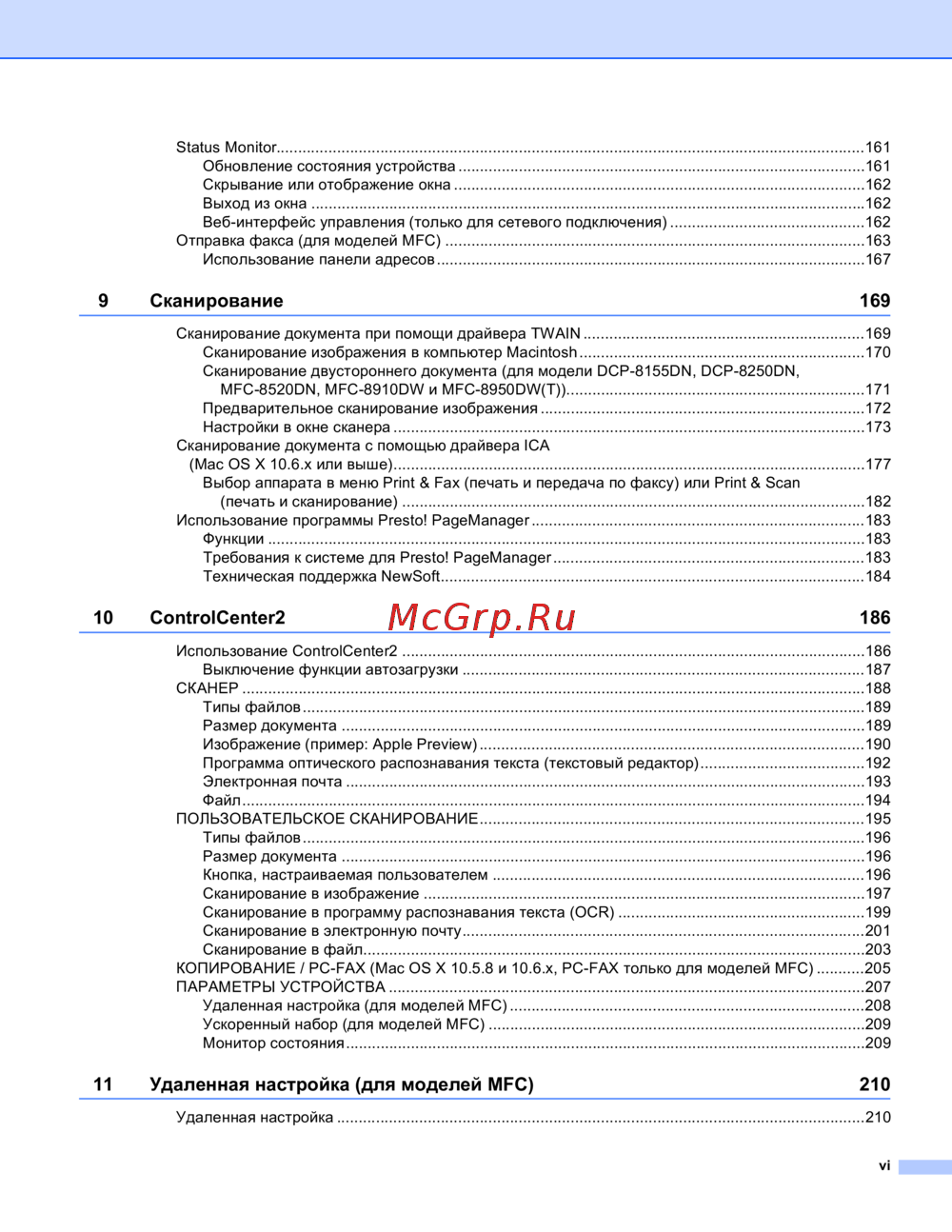 Удаленная настройка (для моделей MFC) ..................................................................................208