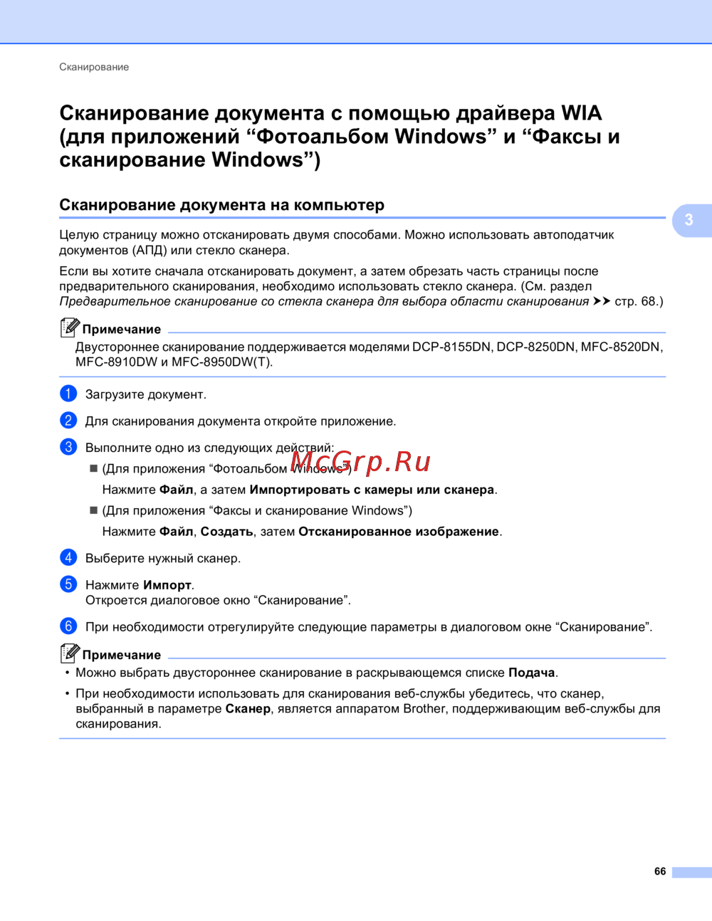 - Сканирование двустороннего документа для модели dcp 8155dn dcp 8250dn mfc 8520dn mfc 8910dw и mfc 8950dw t p.179