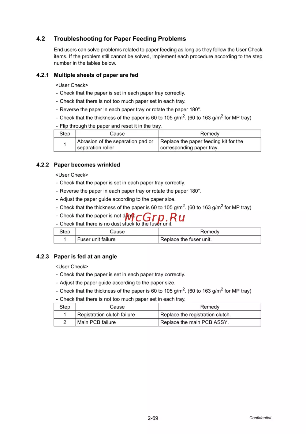 End users can solve problems related to paper feeding as long as they follow the User Check