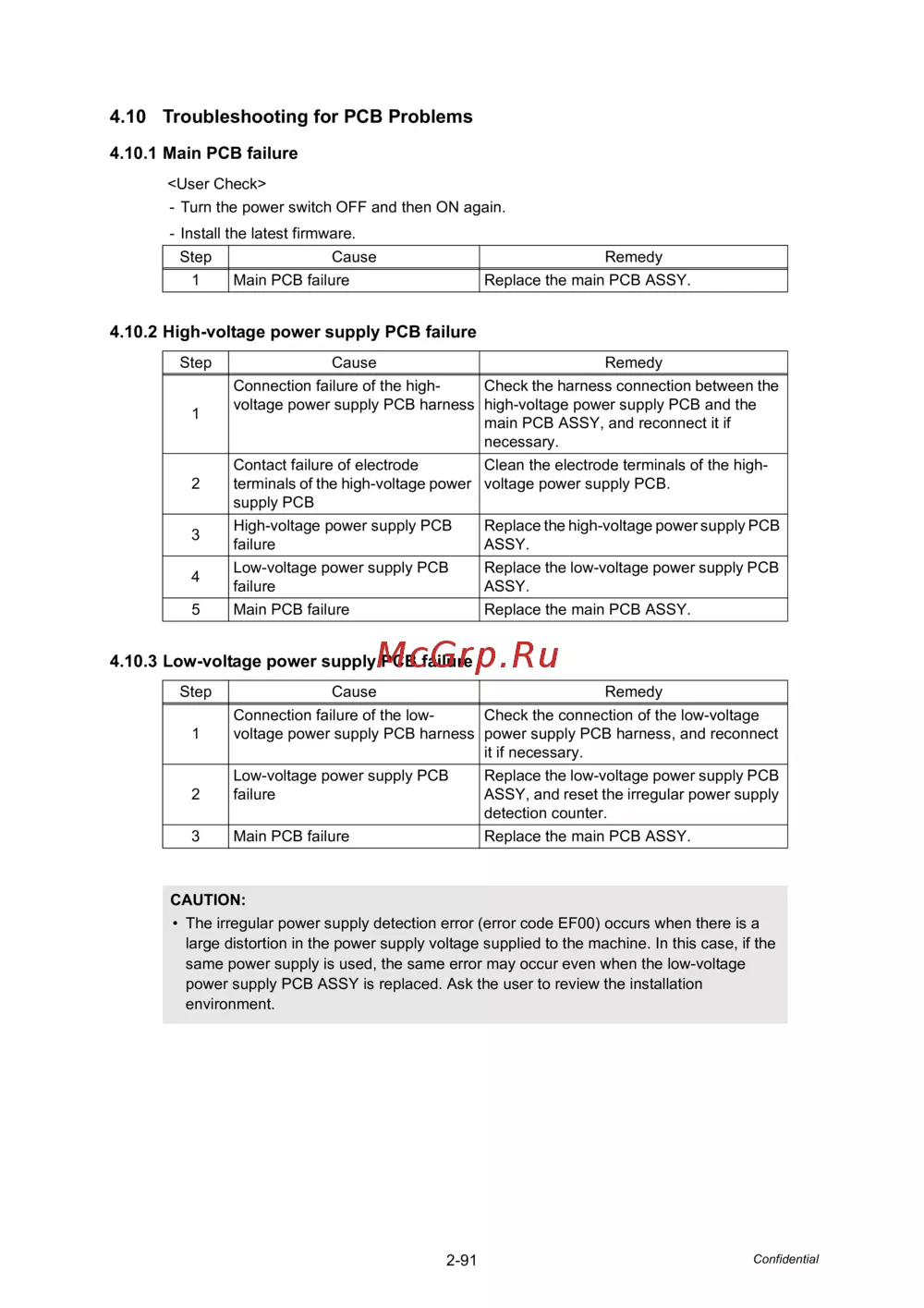 4.10.1 Main PCB failure