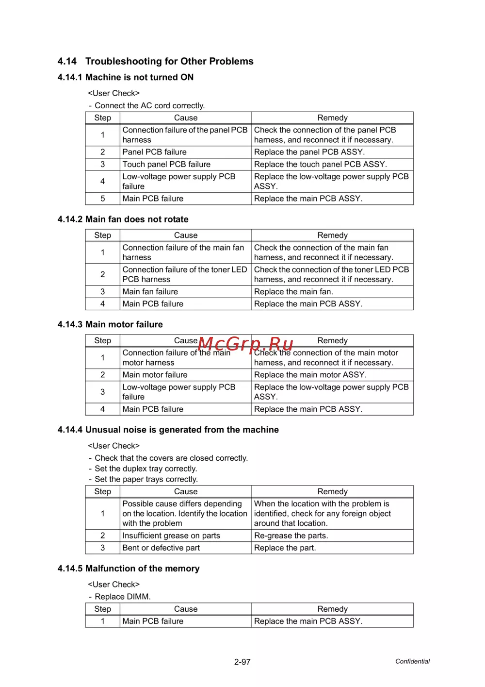 2 Panel PCB failure Replace the panel PCB ASSY.