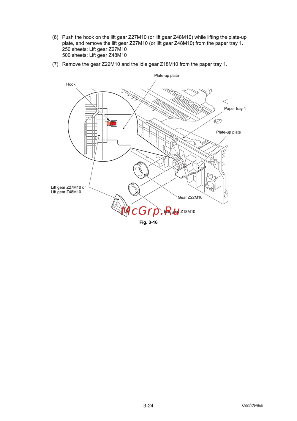 plate, and remove the lift gear Z27M10 (or lift gear Z48M10) from the paper tray 1.