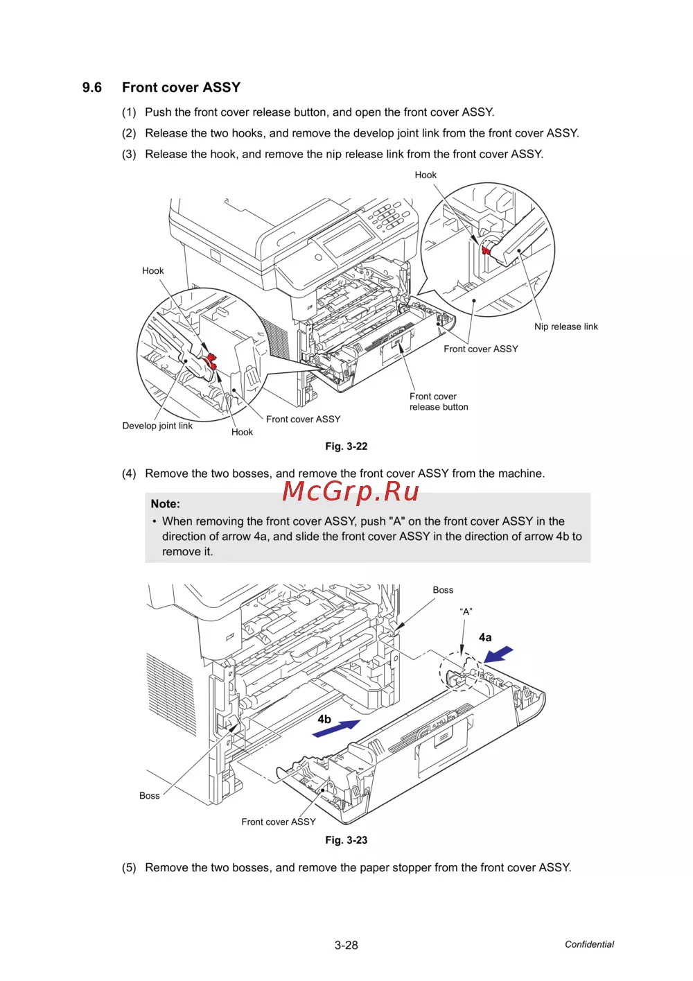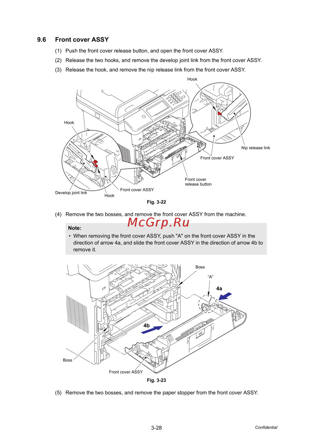 direction of arrow 4a, and slide the front cover ASSY in the direction of arrow 4b to