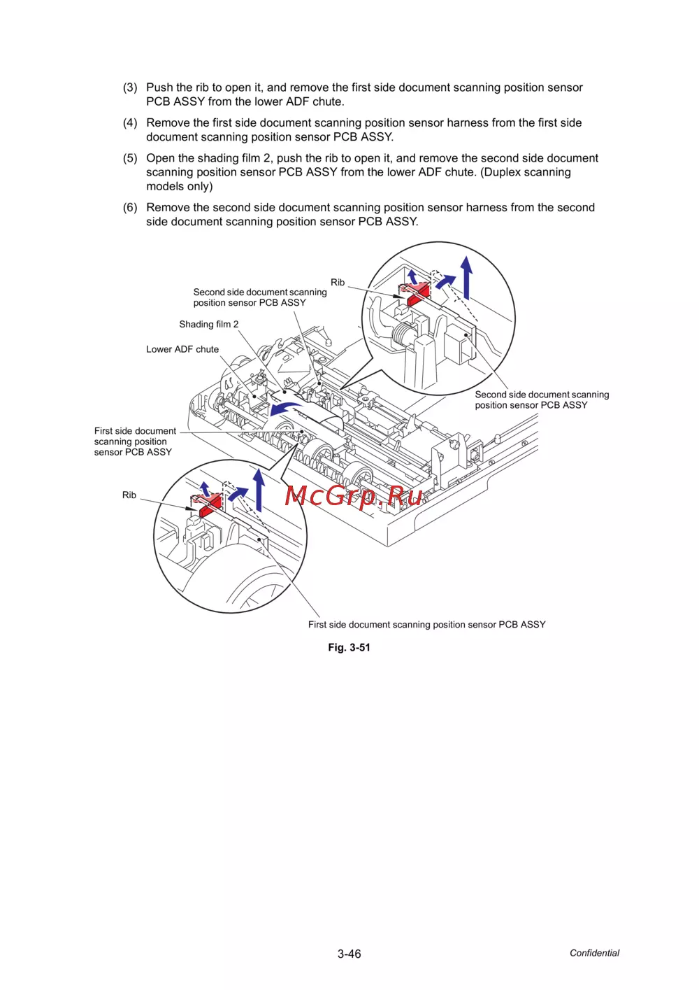 scanning position sensor PCB ASSY from the lower ADF chute. (Duplex scanning