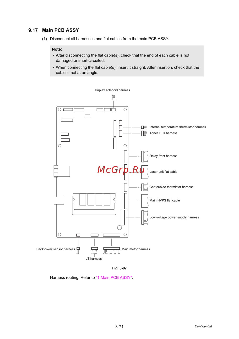 - 8 disconnect the second side cis flat cable duplex scanning models only first side cis flat cable adf cover document detection sensor harness second side document scanning position sensor harness adf motor harness document scanner motor harness panel pcb harness wireless lan harness models with wireless lan only usb host harness speaker harness models with speaker only and ncu harness models with ncu only from the main pcb assy and release these harnesses from the securing fixtures p.360