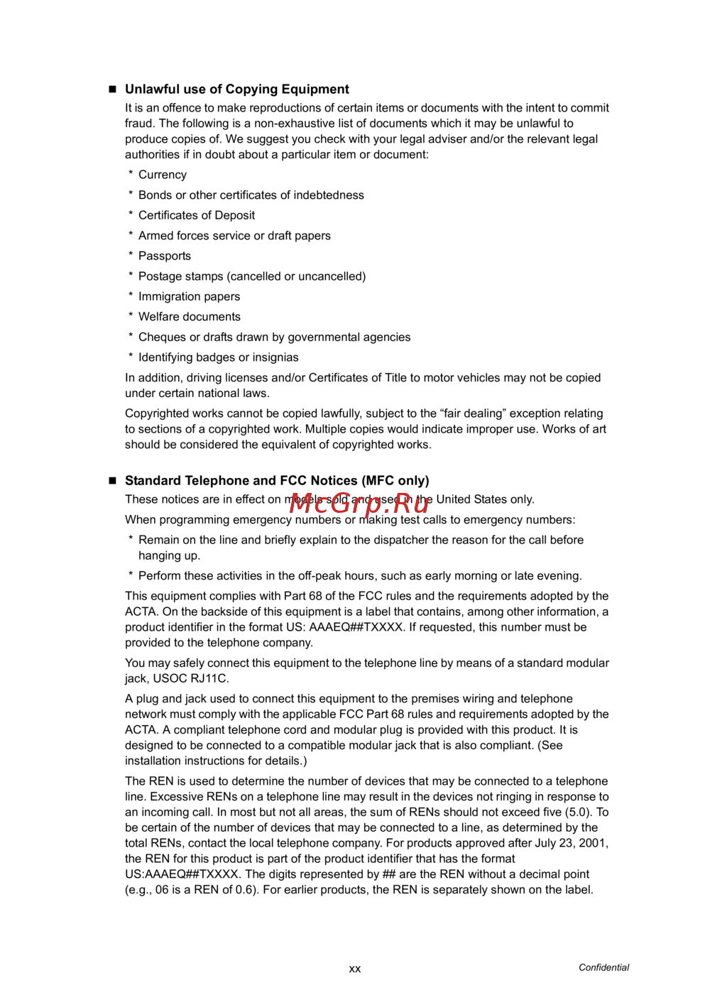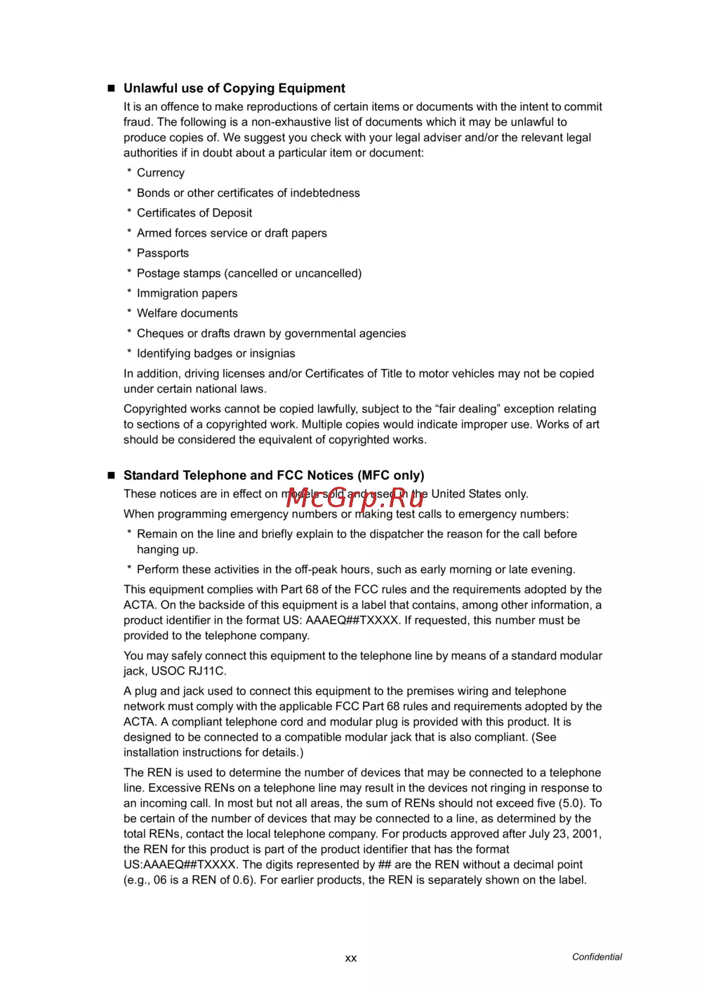 Brother DCP-8110D — legal Implications of Copying Equipment and Emergency Call Guidelines [24/373]