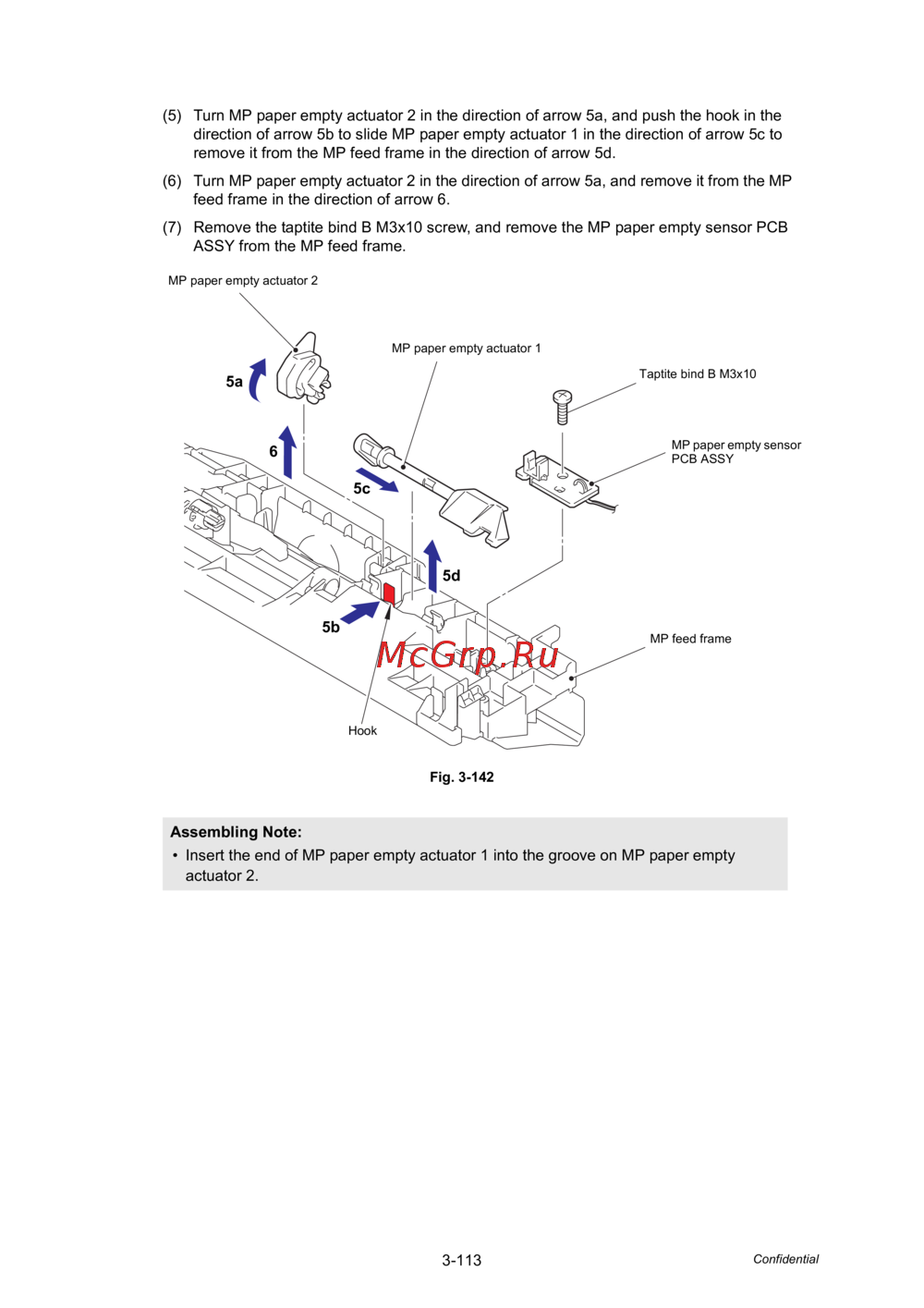 remove it from the MP feed frame in the direction of arrow 5d.