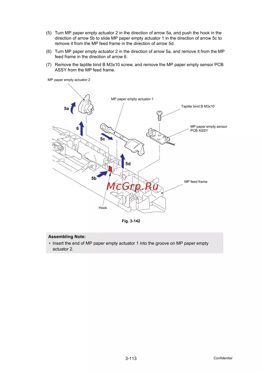 direction of arrow 5b to slide MP paper empty actuator 1 in the direction of arrow 5c to