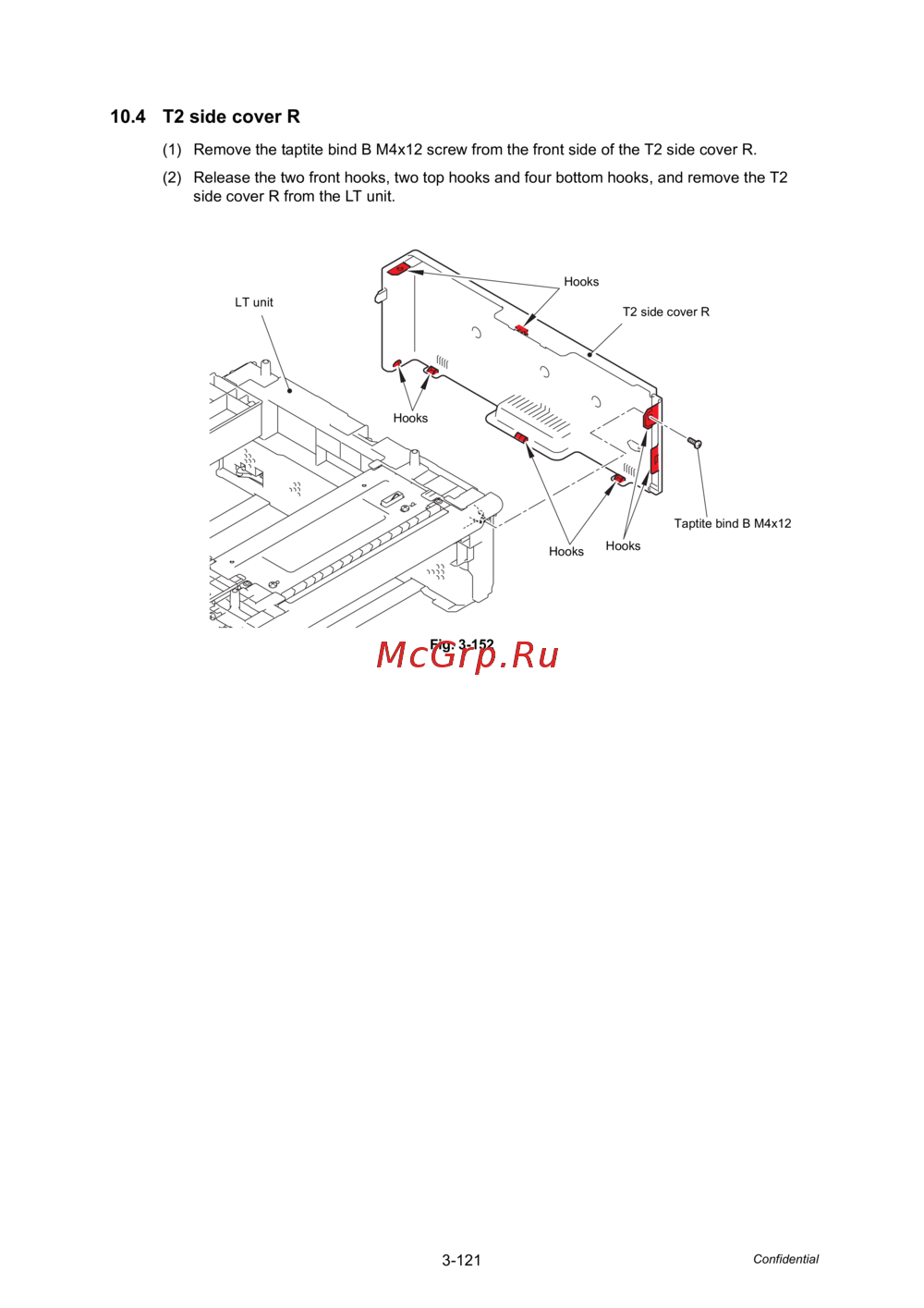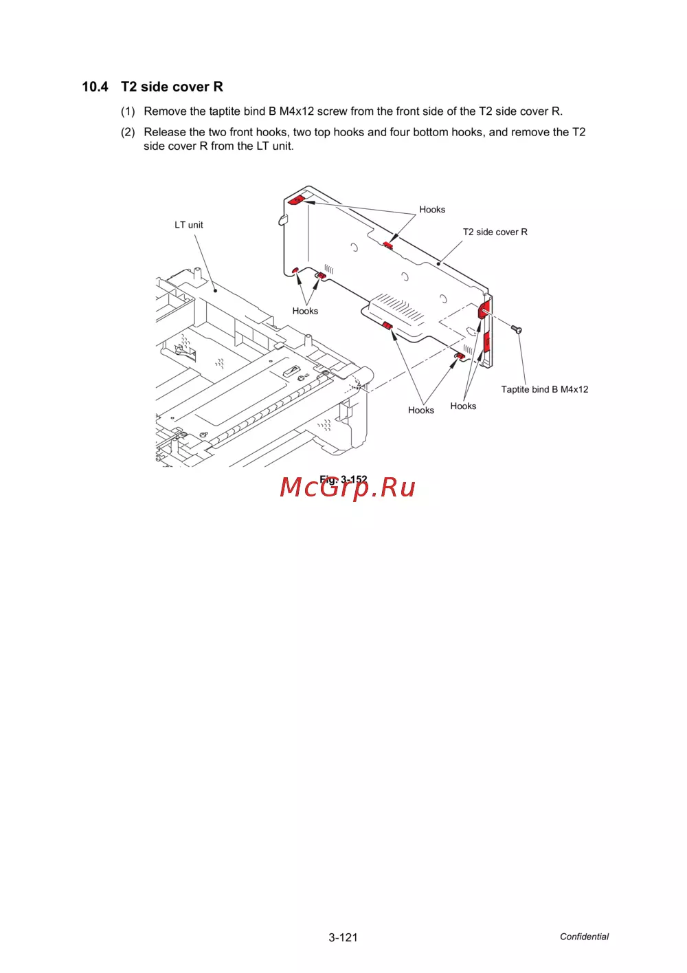 - 3 release the two hooks on the t2 separation pad assy from the paper tray 2 p.366