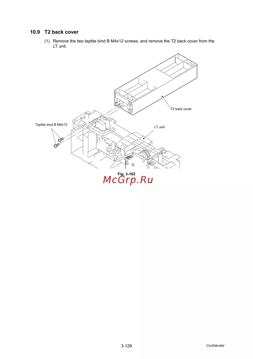 - 1 remove the two taptite bind b m4x12 screws from the paper tray 1 p.364