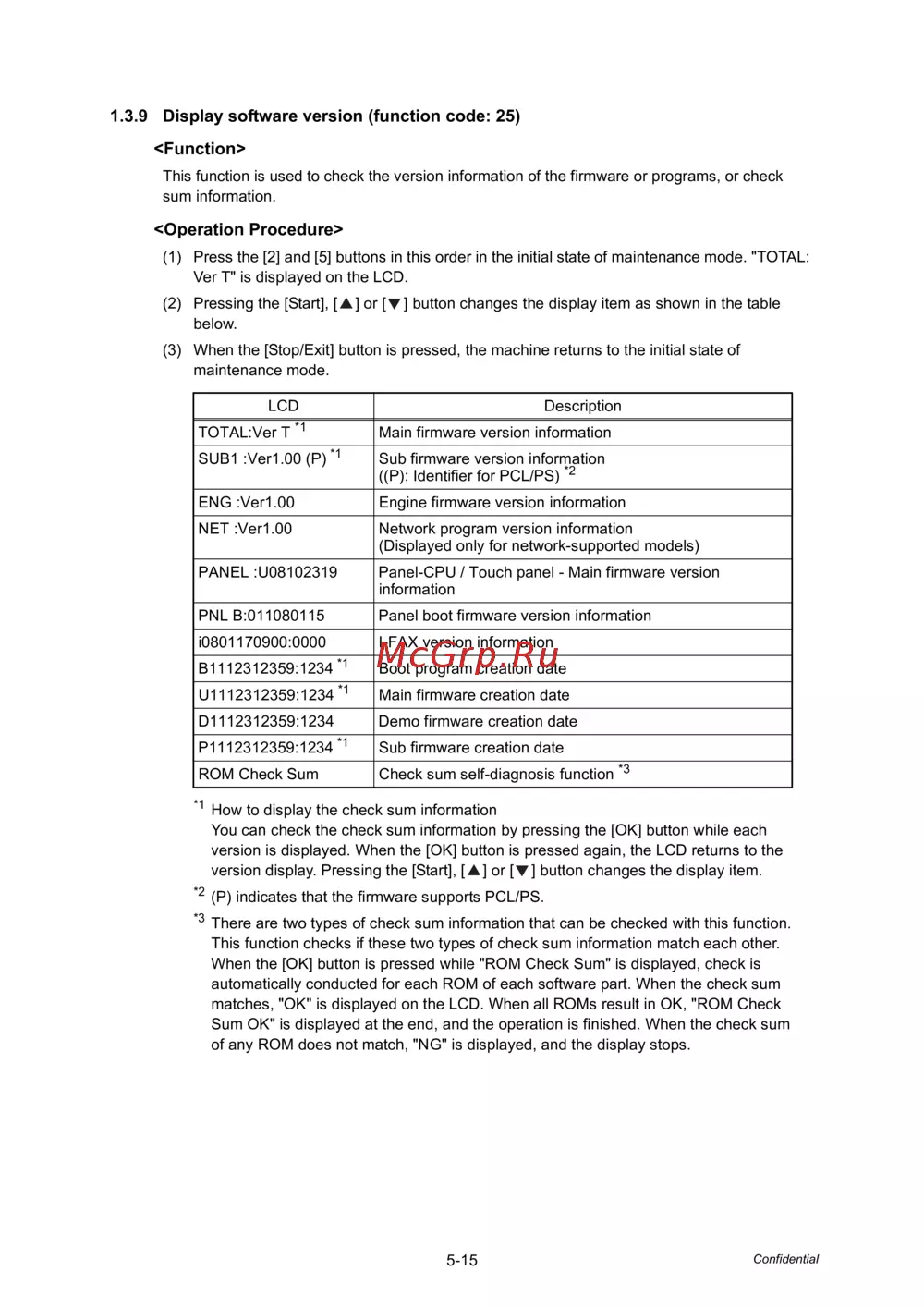When the [OK] button is pressed while "ROM Check Sum" is displayed, check is