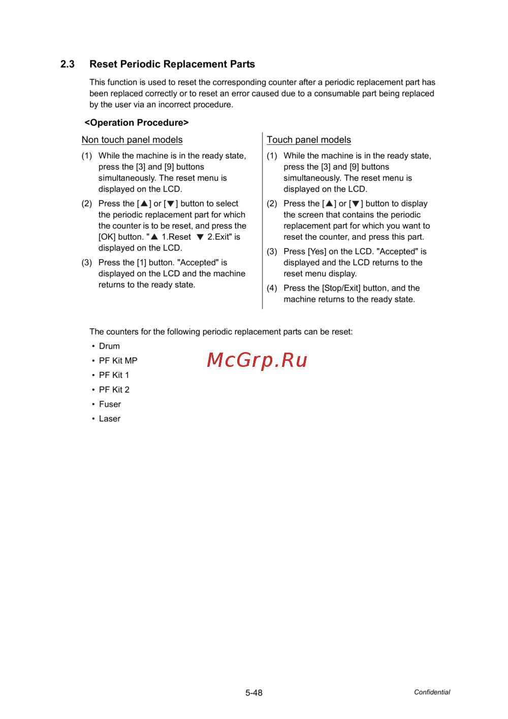 2.3 Reset Periodic Replacement Parts