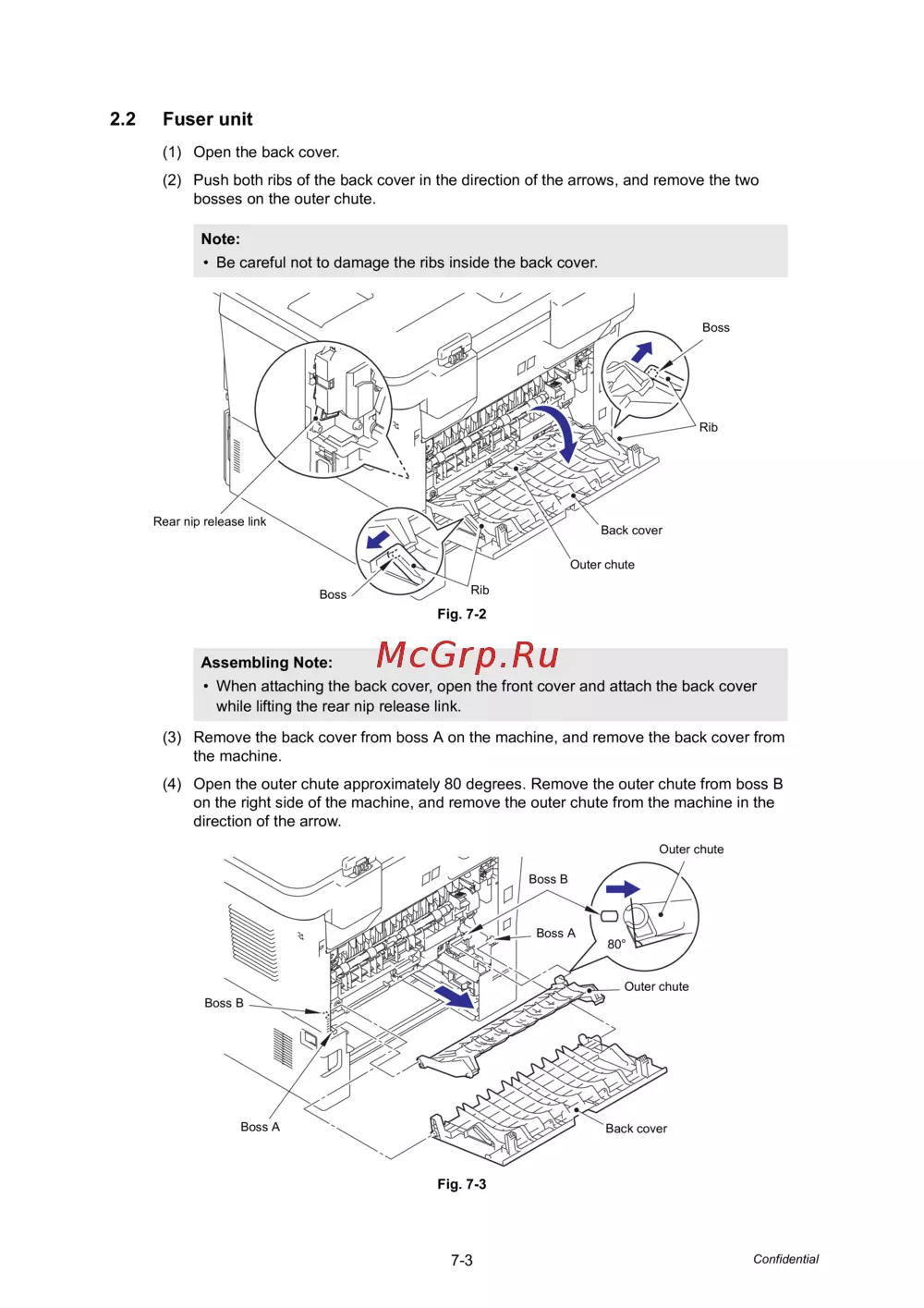 - 6 remove the fuser cover from the bosses on the fuser unit and remove the fuser cover from the machine p.354