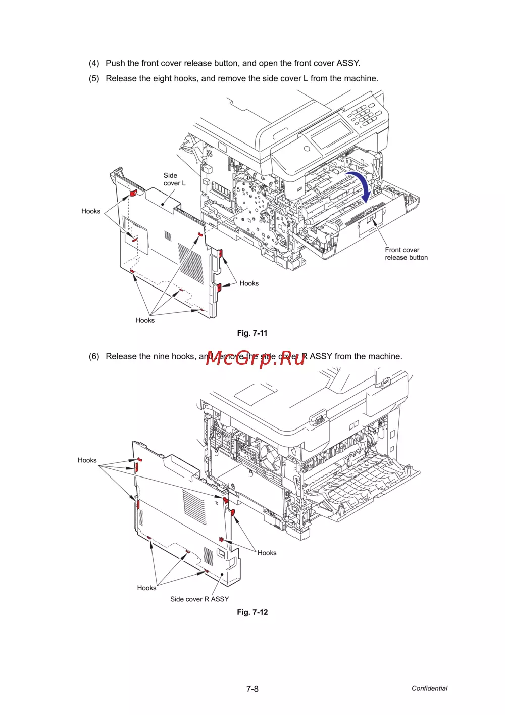 - 6 release the nine hooks and remove the side cover r assy from the machine p.358