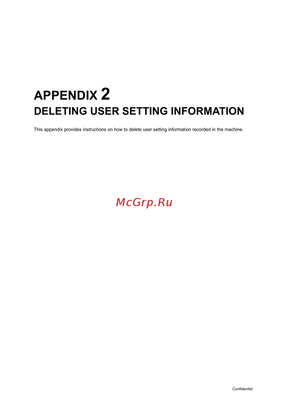 - This appendix provides instructions on how to delete user setting information recorded in the machine p.370