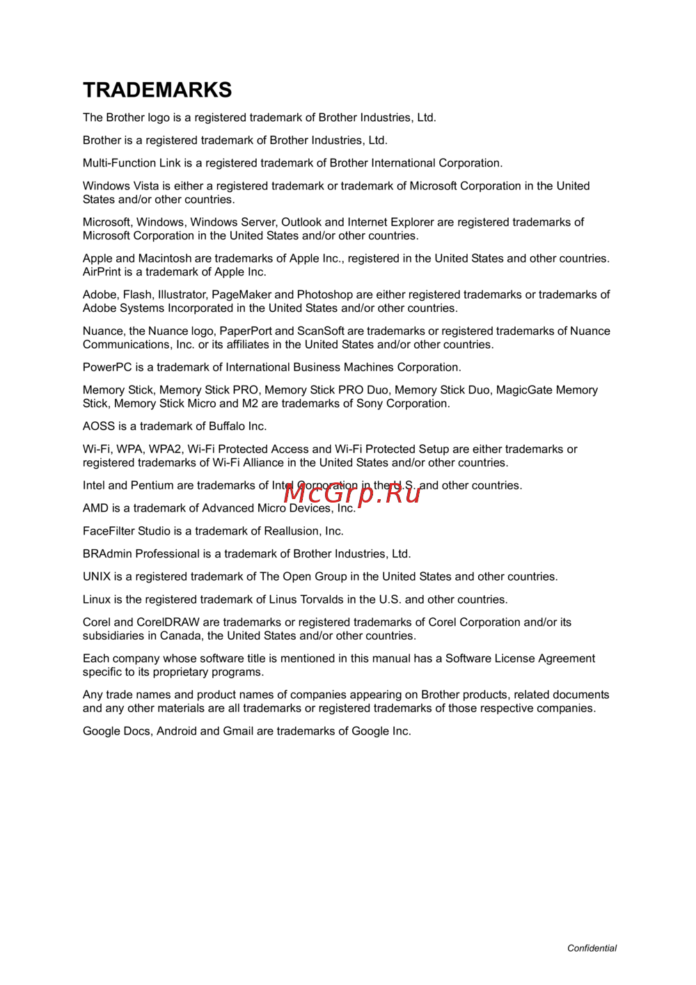 Multi-Function Link is a registered trademark of Brother International Corporation.