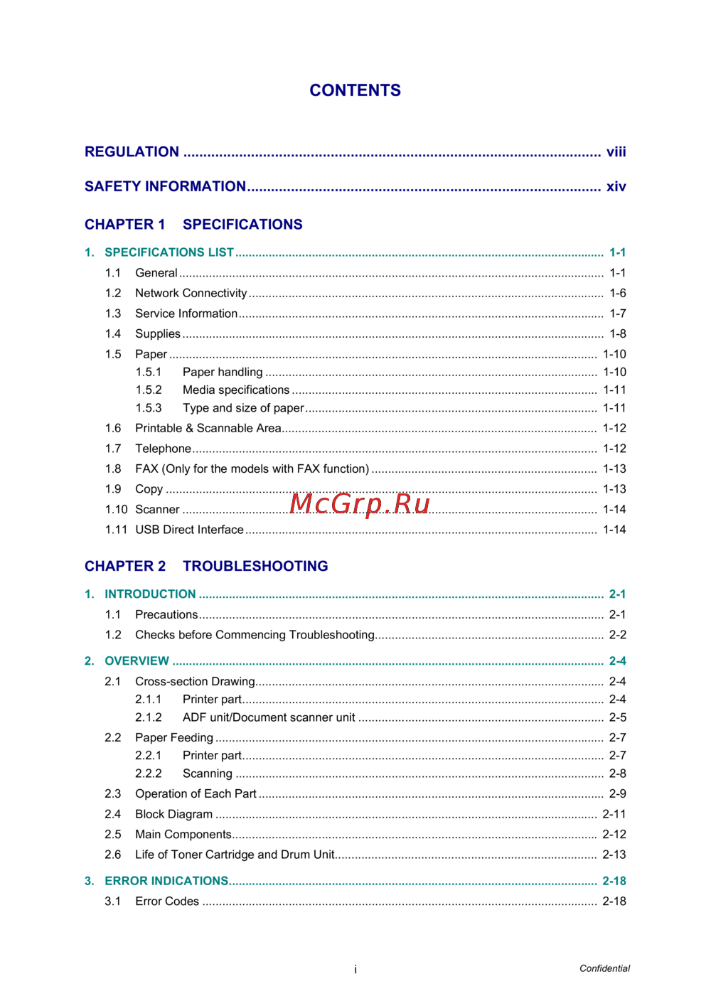 2.6 Life of Toner Cartridge and Drum Unit............................................................................... 2-13
