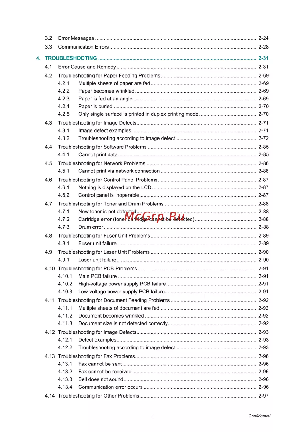 4.12.2 Troubleshooting according to image defect ........................................................ 2-93