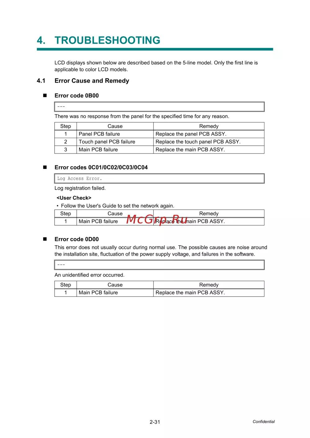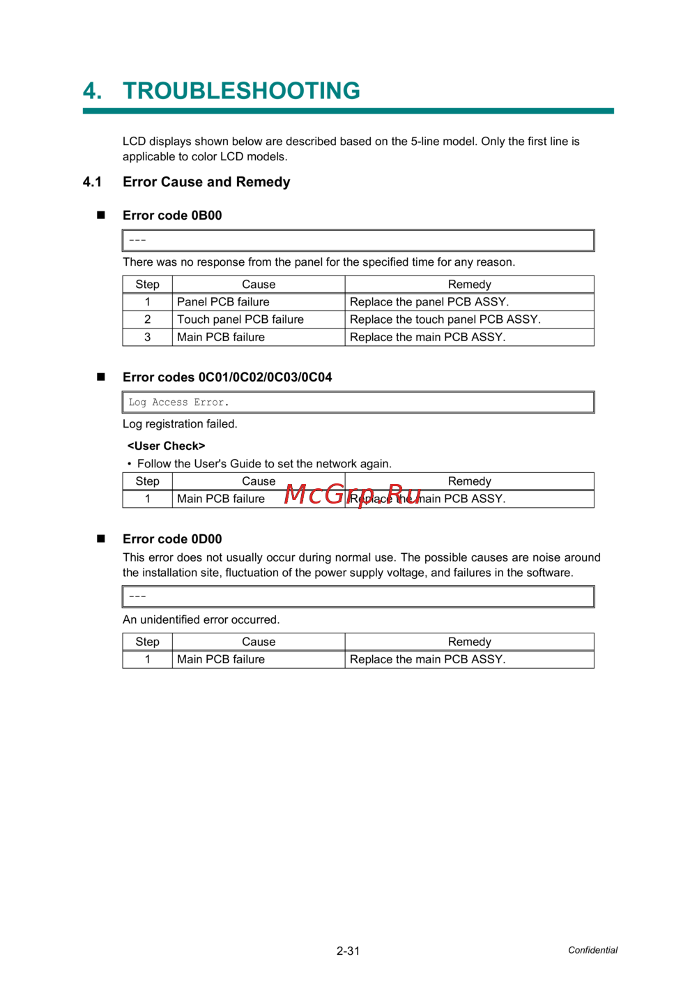 4.1 Error Cause and Remedy