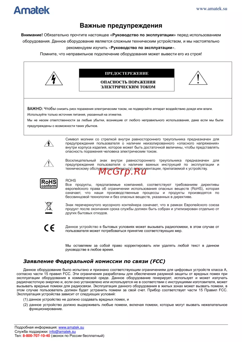 Служба поддержки: info@amatek.su