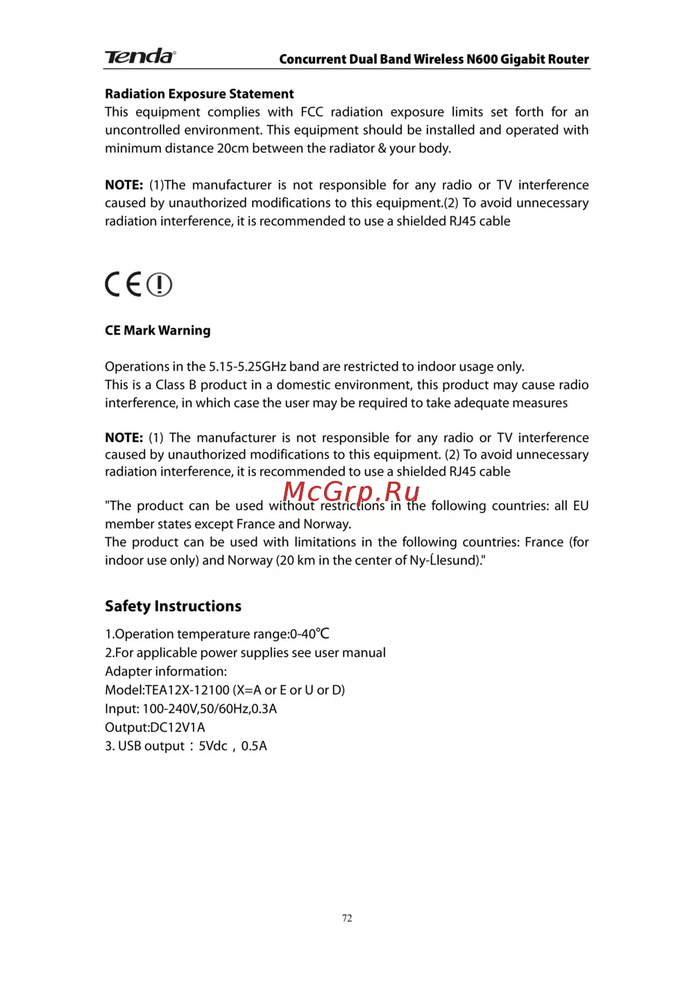 Tenda N60 — информация о радиационном воздействии и безопасности маршрутизатора [72/72]