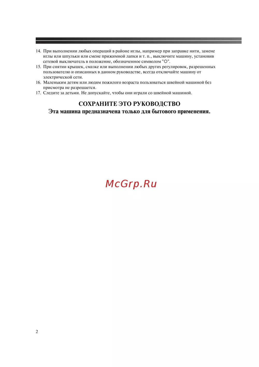 - Сохраните это руководство эта машина предназначена только для бытового применения p.3