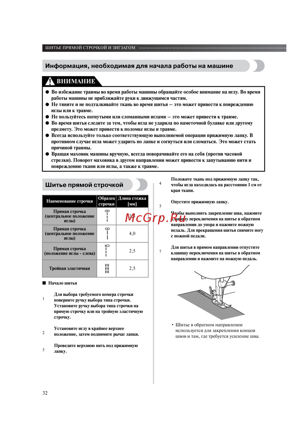 Во избежание травмы во время работы машины обращайте особое внимание на иглу. Во время