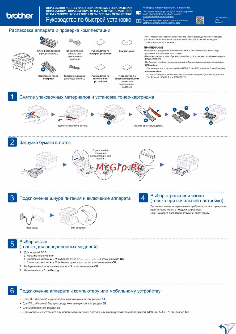 Brother DCP-L2540DNR Руководство по быстрой установке онлайн