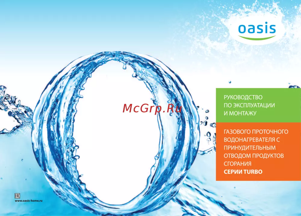 oasis РУКОВОДСТВО ПО ЭКСПЛУАТАЦИИ И МОНТАЖУ ГАЗОВОГО ПРОТОЧНОГО ВОДОНАГРЕВАТЕЛЯ С ПРИНУДИТЕЛЬНЫМ ОТВОДОМ ПРОДУКТОВ СГОРАНИЯ СЕРИИ TURBO
