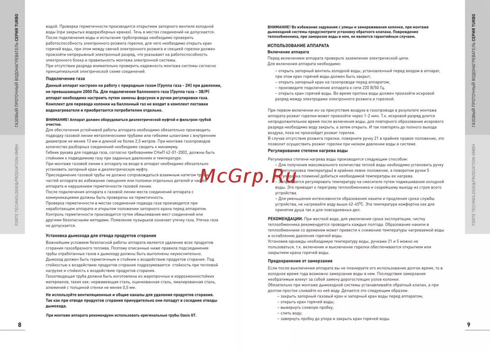 - Forte technologie produktion gmbh газовый проточный водонагреватель серия turbo p.7