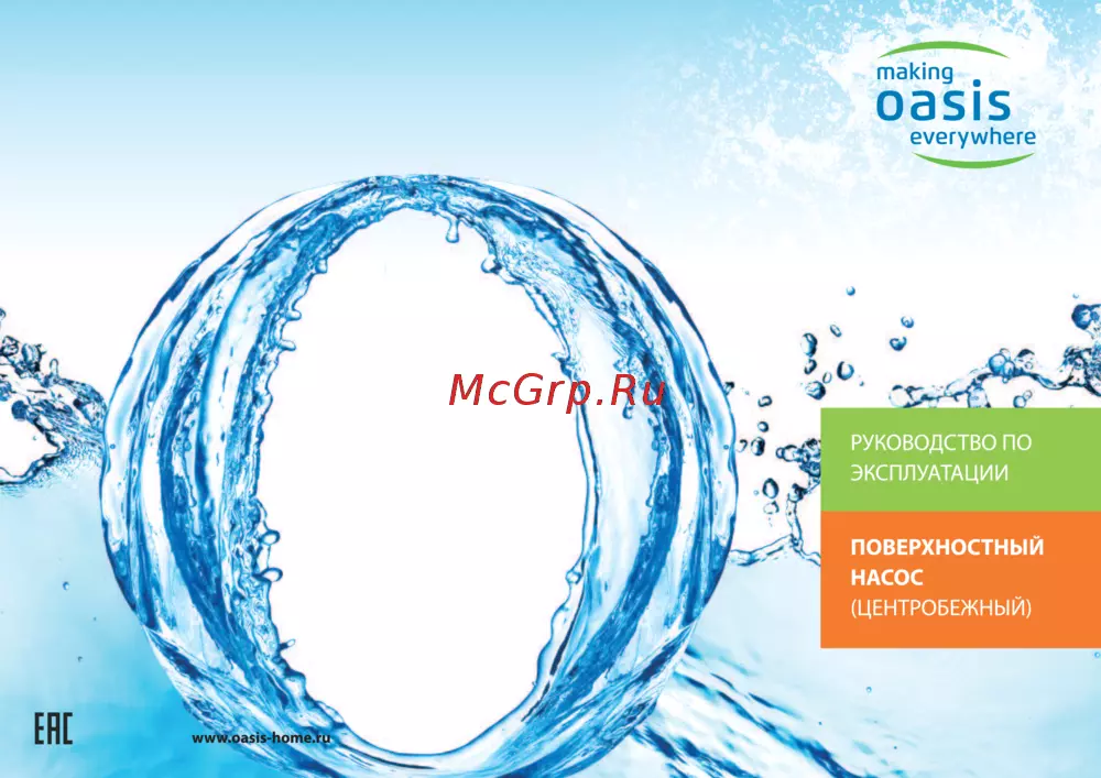 making oasis everywhere РУКОВОДСТВО no ЭКСПЛУАТАЦИИ ПОВЕРХНОСТНЫЙ НАСОС ЦЕНТРОБЕЖНЫЙ