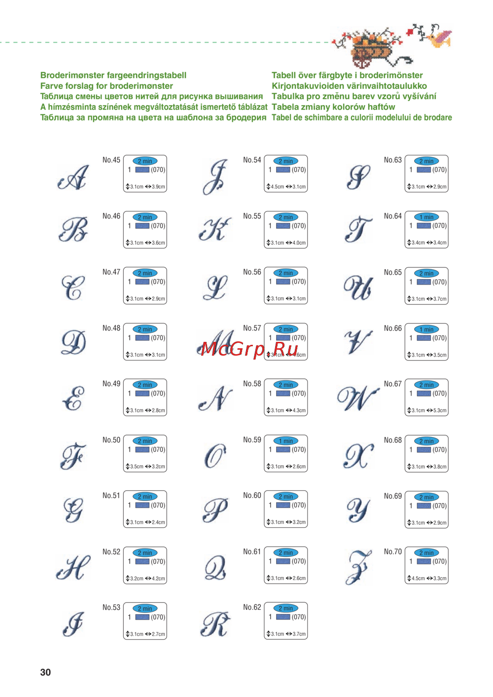 - Таблица смены цветов нитей для рисунка вышивани p.30