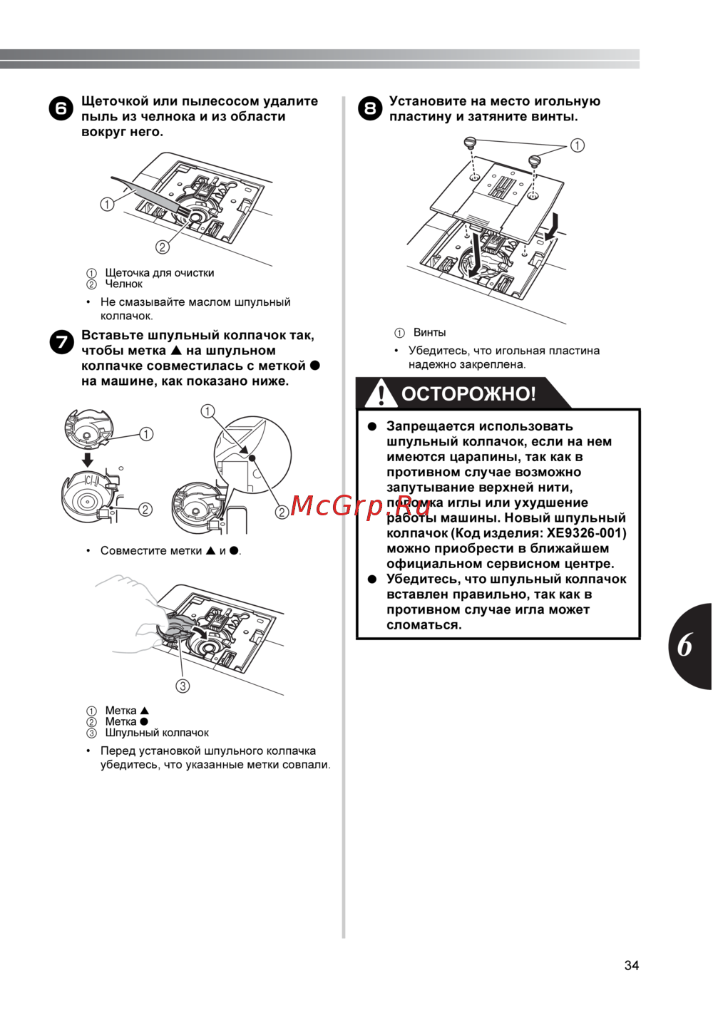 - Поврежденную или ненадлежащую игольную пластину поскольку это может привести к поломке иглы p.3