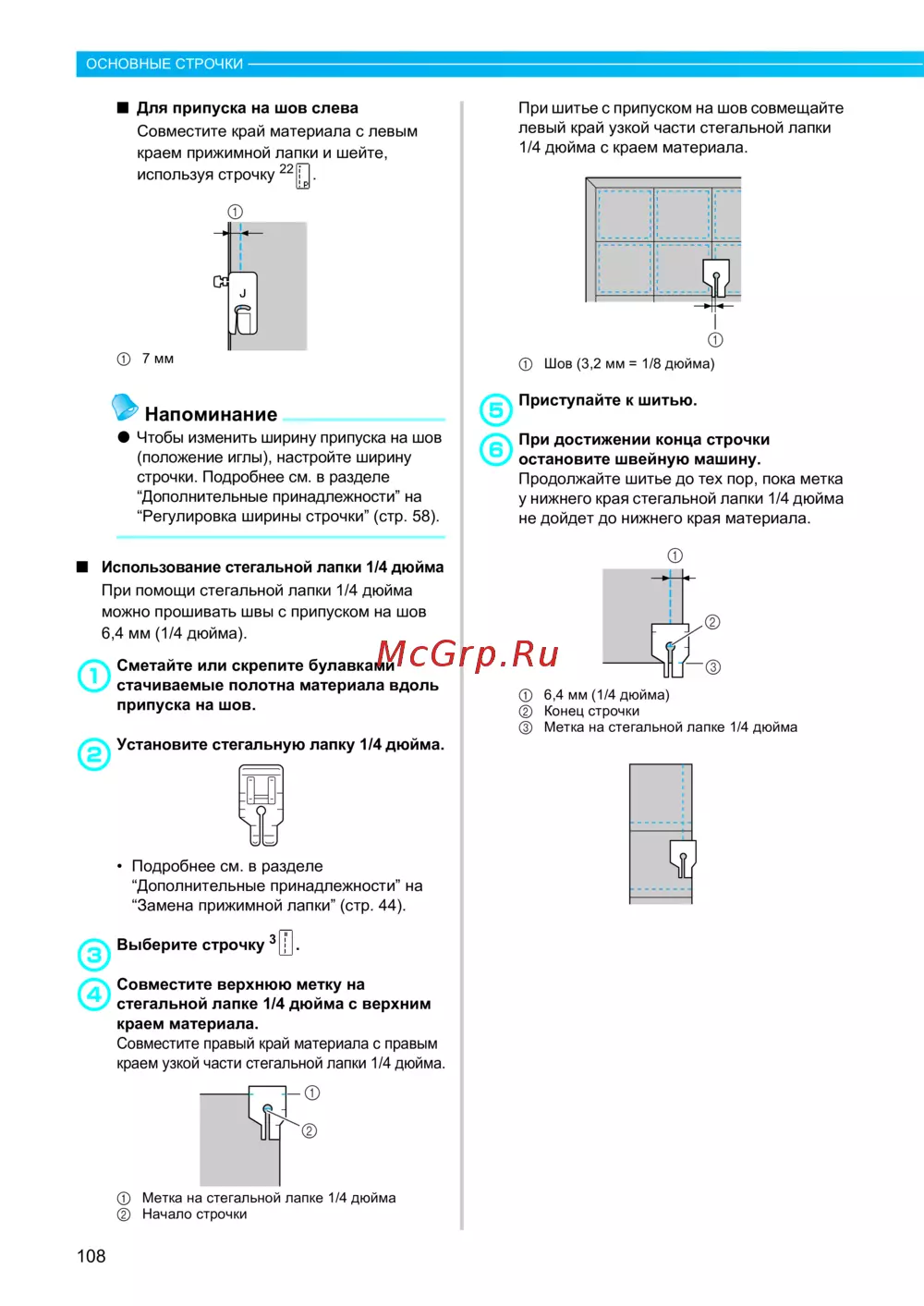 Brother INNOV-'IS NV-1250 — основные техники шитья: припуски на шов и стегальная лапка [110/204]
