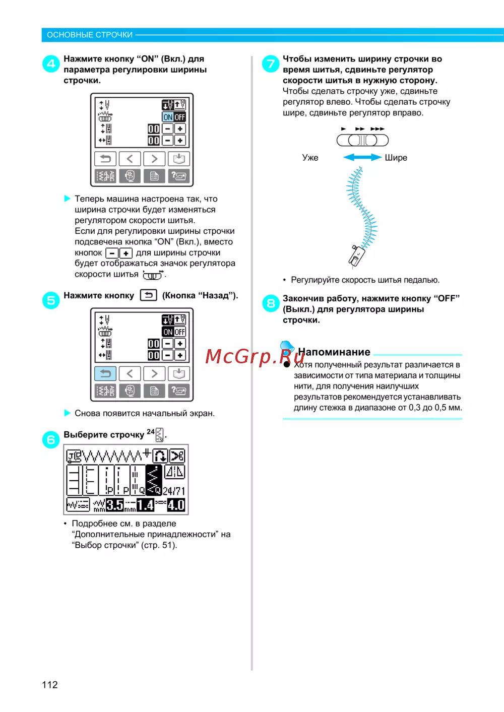 Brother INNOV-'IS NV-1250 — регулировка ширины строчки и скорости шитья: советы и рекомендации [114/204]