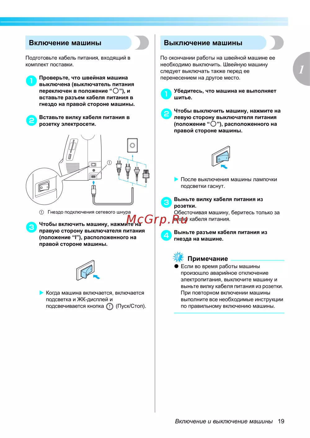 Brother INNOV-'IS NV-1250 — как правильно включать и выключать швейную машину [21/204]