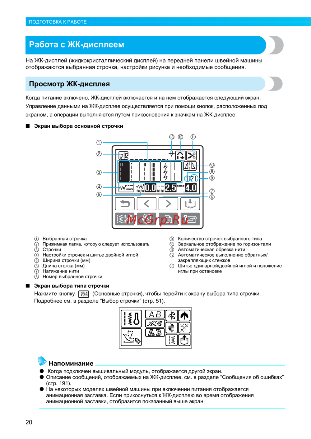 Brother INNOV-'IS NV-1250 — управление ЖК-дисплеем швейной машины: инструкции и советы [22/204]