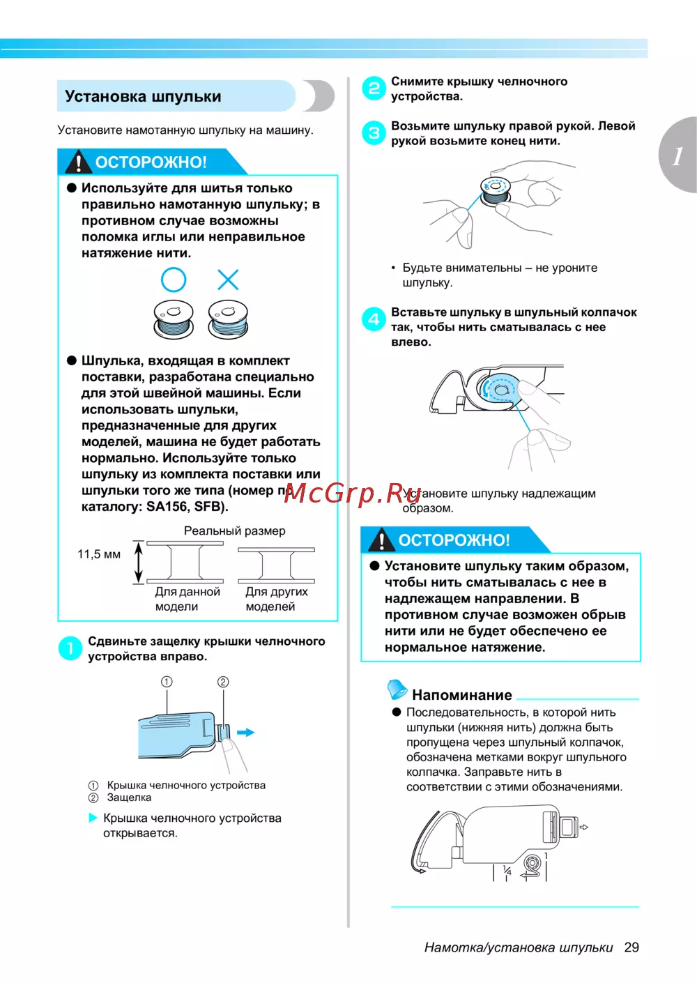 Brother INNOV-'IS NV-1250 — правильная установка шпульки для швейной машины [31/204]