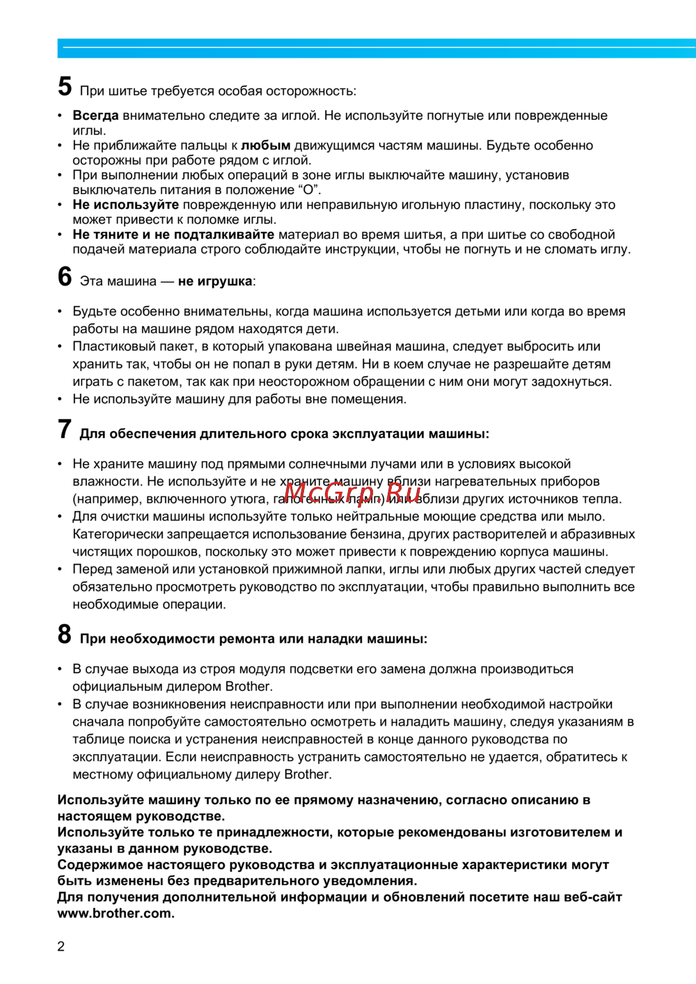 Узнайте, как правильно использовать и ухаживать за швейной машиной. Следуйте рекомендациям по безопасности и уходу для продления срока службы устройства.